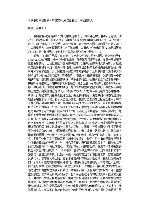 爱给网提供海量的剧本文案资源素材免费下载, 本次作品为doc 格式的《快手枪手快枪手》解说文案_专访张静初:演艺圈素人, 本站编号100334339, 该剧本文案素材大小为30k, 更多精彩剧本文案素材,尽在爱给网。