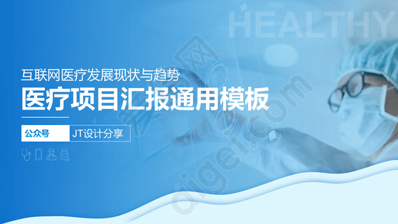 爱给网提供海量的PPT资源素材免费下载, 本次作品为pptx 格式的蓝色大气医疗风项目汇报通用PPT模板, 本站编号68620895, 该PPT素材大小为34m, 该素材已被下载:14次, 更多精彩PPT素材,尽在爱给网。