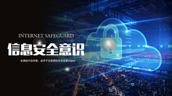 蓝色科技感企业事业单位电脑互联网信息安全培训安全管理PPT模板