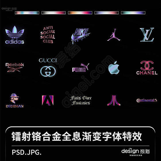 爱给网提供海量的模板大全资源素材免费下载, 本次作品为psd 格式的镭射铬合金全息渐变字体特效, 本站编号120372989, 该模板大全素材大小为13m, 该素材已被下载:1次, 更多精彩模板大全素材,尽在爱给网。