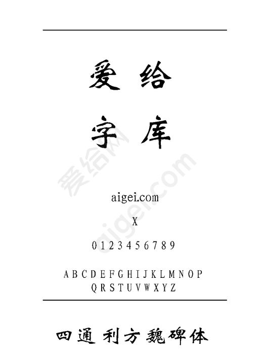爱给网提供海量的字体库资源素材免费下载, 本次作品为ttf 格式的四通利方魏碑体, 本站编号124755684, 该字体库素材大小为3m, 该素材已被下载:4次, 更多精彩字体库素材,尽在爱给网。