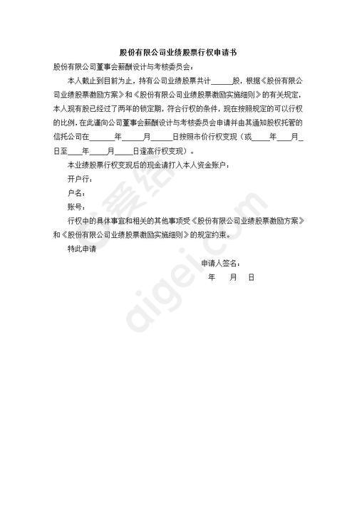 业绩股票行权申请书